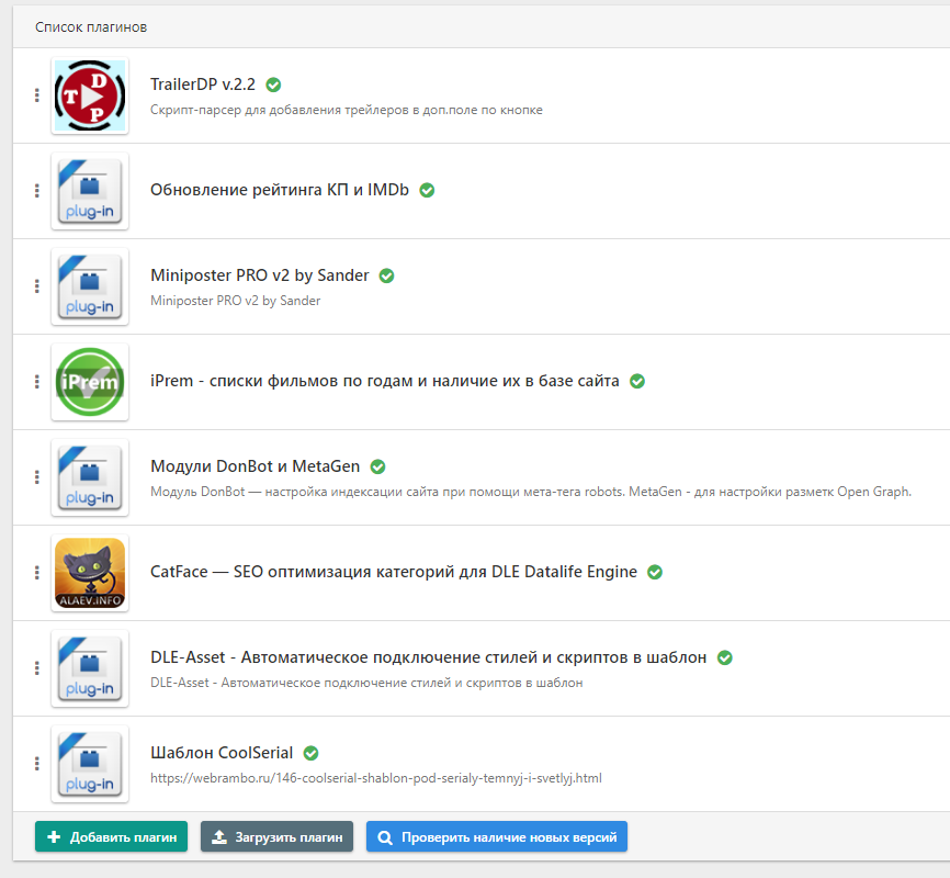 Для установки переходите в раздел управления плагинами и загружаете сначала shablon-coolserial.zip, потом поочередно все дополнительные плагины. Далее в настройках системы выбираете шаблон coolserial-light-qv3, на вкладке оптимизация включаете нужные пункты для оптимизации загрузки сайта, и не забываем включить отложенную загрузку изображений на вкладке Изображения. Все модули настроены по нужным доп полям, от вас остается только прописать токен ustore, или использовать любой другой источник парсинга данных.