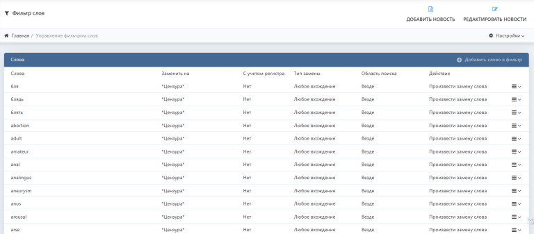 Установка: просто скопировать файл в папку engine/data с заменой файла, если он у вас пустой, и в админке в разделе «Утилиты -> Фильтр слов» появятся все эти стоп-слова:
