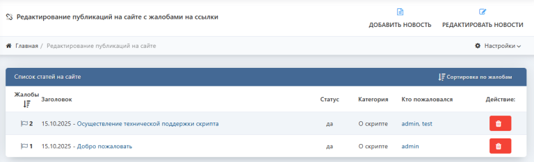 - Итог: Администратор видит, в каких новостях сломались ссылки, кто об этом сообщил, и может быстро все исправить.