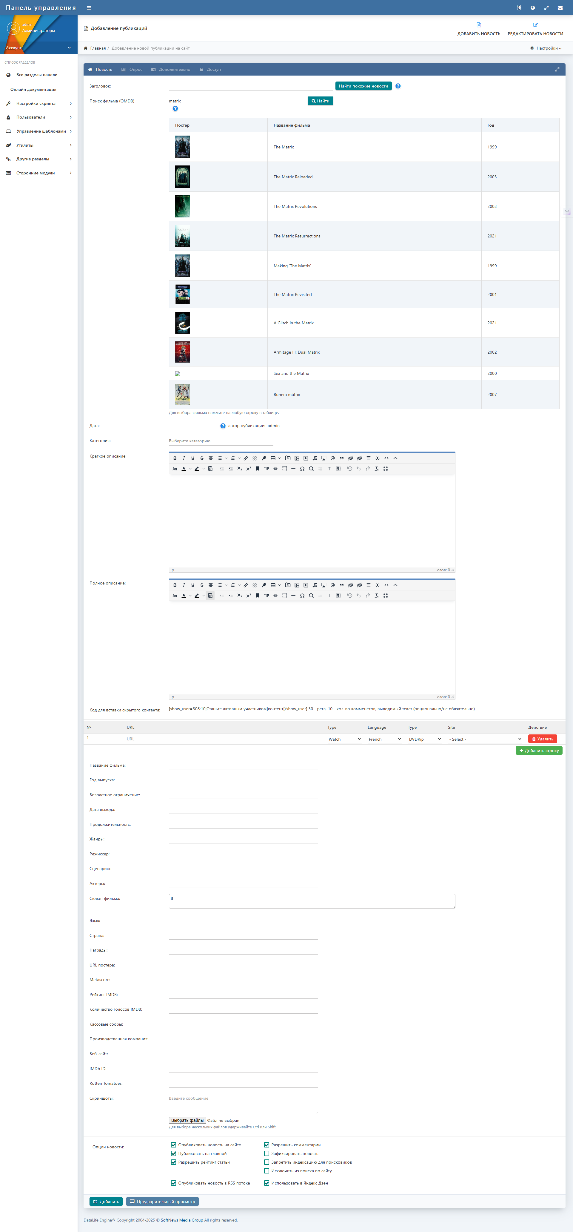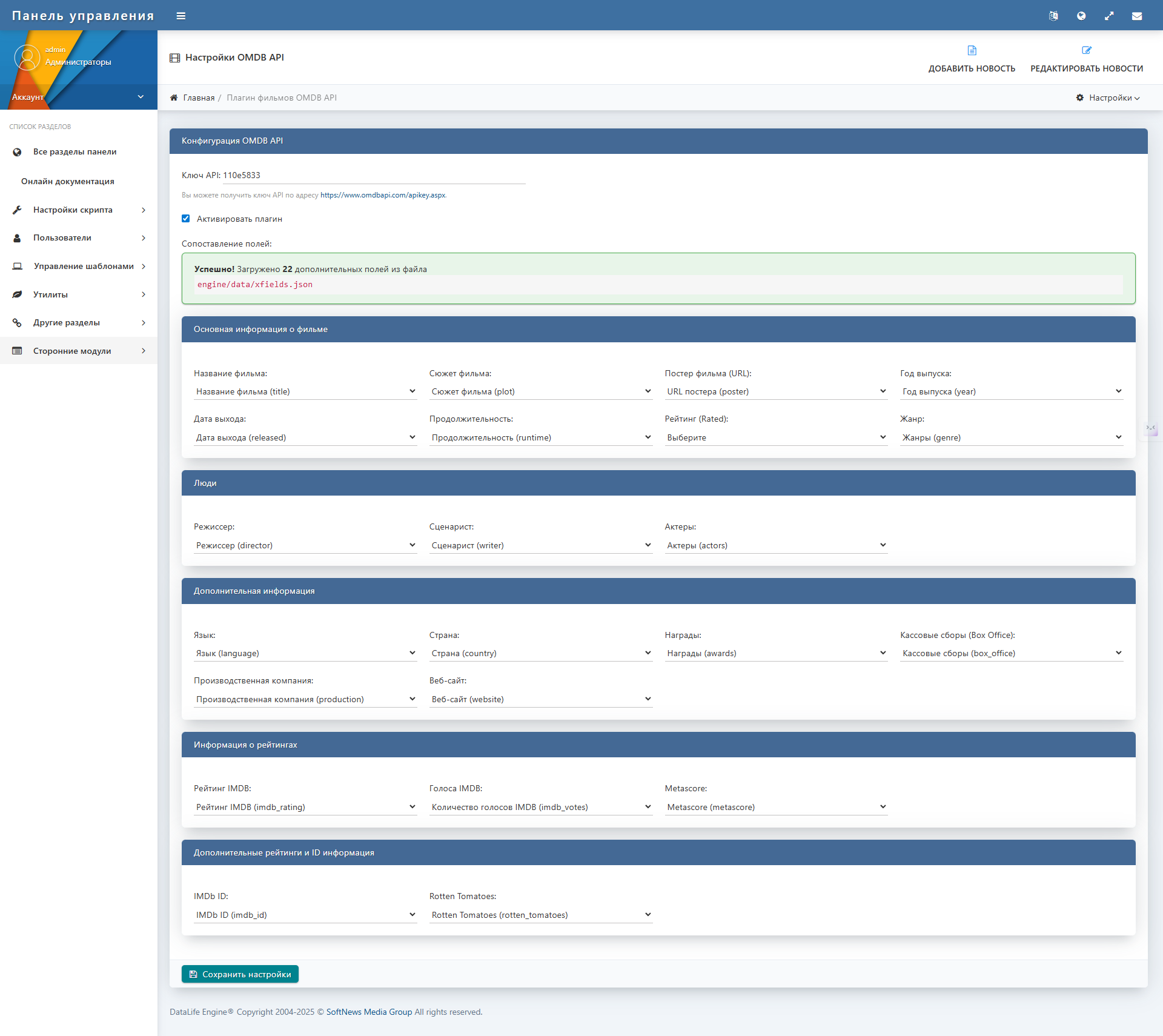 Скачать парсер OMDB API для DLE на русском языке DLE 19.0: