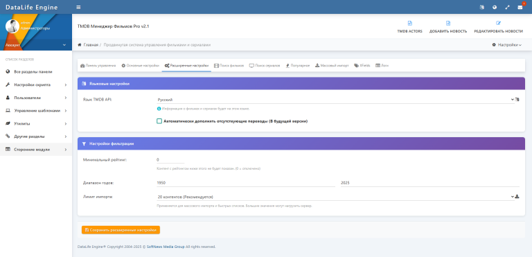 Скачать плагин TMDB Movie Manager Pro [русский язык] DLE 19.0+: