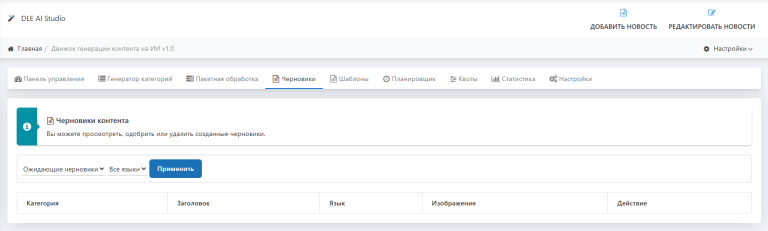 📄 Система черновиков: все сгенерированные материалы сохраняются как черновики, их можно просмотреть, отредактировать, улучшить или одобрить.