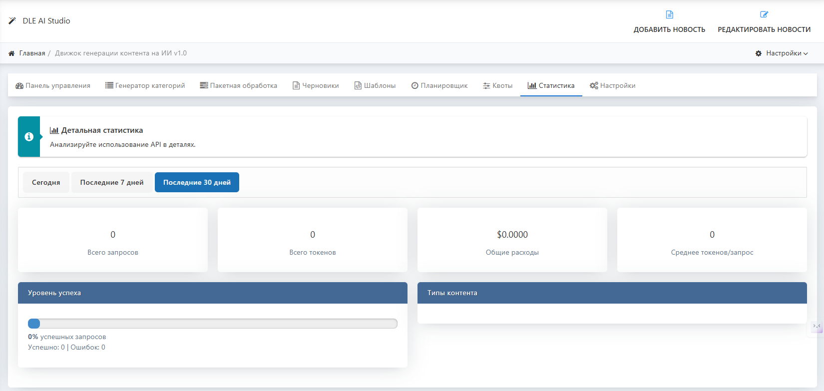 📊 Статистика и логирование: подробная аналитика по использованию ИИ — количество запросов, потраченные токены, расходы, успешность операций.