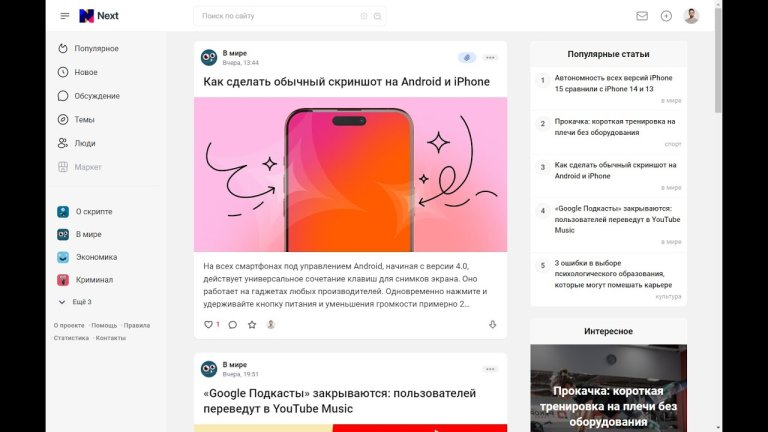 Next — красивый и современный DLE шаблон, отдалённо напоминающий такие платформы как: vc.ru, dtf.ru. Тема отлично подойдёт для блоггинга, современных журналов, статейных сайтов любой тематики, сообществ по интересам с пользовательским размещением статей. Стиль шаблона выполнен с учётом последних тенденций и разработан для удобного использования как пользователем так и администратором.