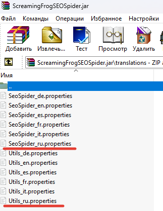 - В папку "translations" закинуть файлы SeoSpider_ru.properties и Utils_ru.properties: